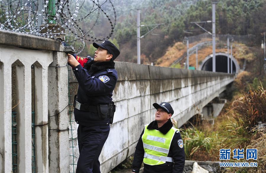 12月18日,常曉龍在排查鐵路沿線護欄的安全隱患。新華社記者陳立群攝