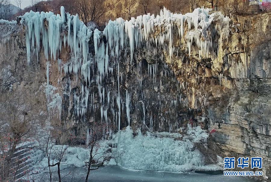 這是平山縣沕沕水景區(qū)的冰瀑(12月25日無人機攝)。新華社記者楊世堯攝