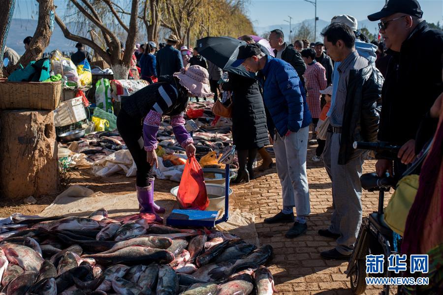 12月25日,人們?cè)谛窃坪系睦虾泳佐~市選購(gòu)剛捕撈的鮮魚。新華社記者胡超攝