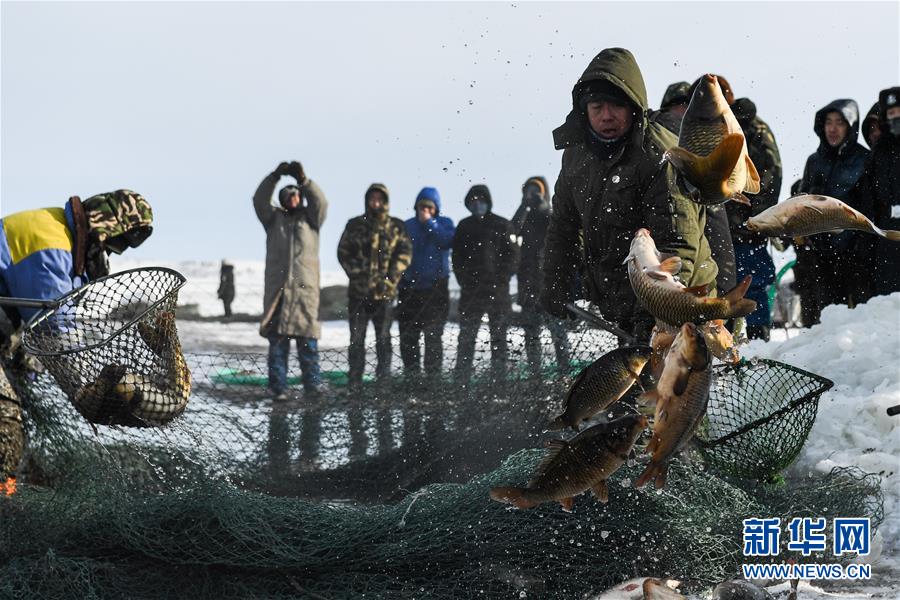 12月18日,工作人員將冬捕魚打撈上岸。當(dāng)日,位于內(nèi)蒙古呼倫貝爾大草原上的諾干湖舉行冬捕活動(dòng),吸引不少游客前來(lái)觀看。冬日的諾干湖冰雪覆蓋,諾干湖冬捕也是當(dāng)?shù)囟韭糜蔚奶厣顒?dòng)之一。新華社記者劉磊攝