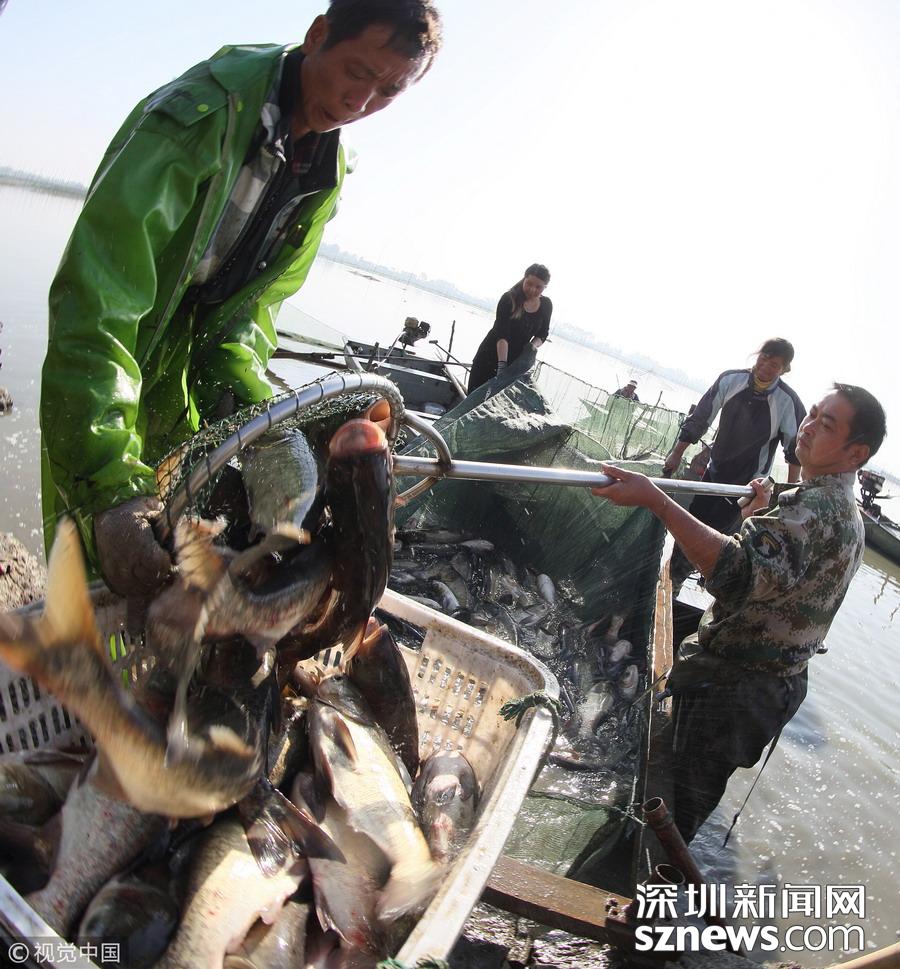 江蘇揚(yáng)州,漁夫?qū)Ⅳ~撈出過(guò)秤。