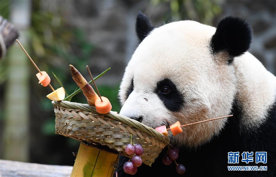 海口:大熊貓“擼串”迎新年