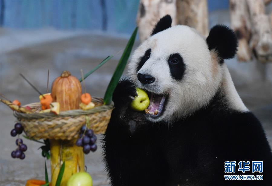 海口:大熊貓“擼串”迎新年