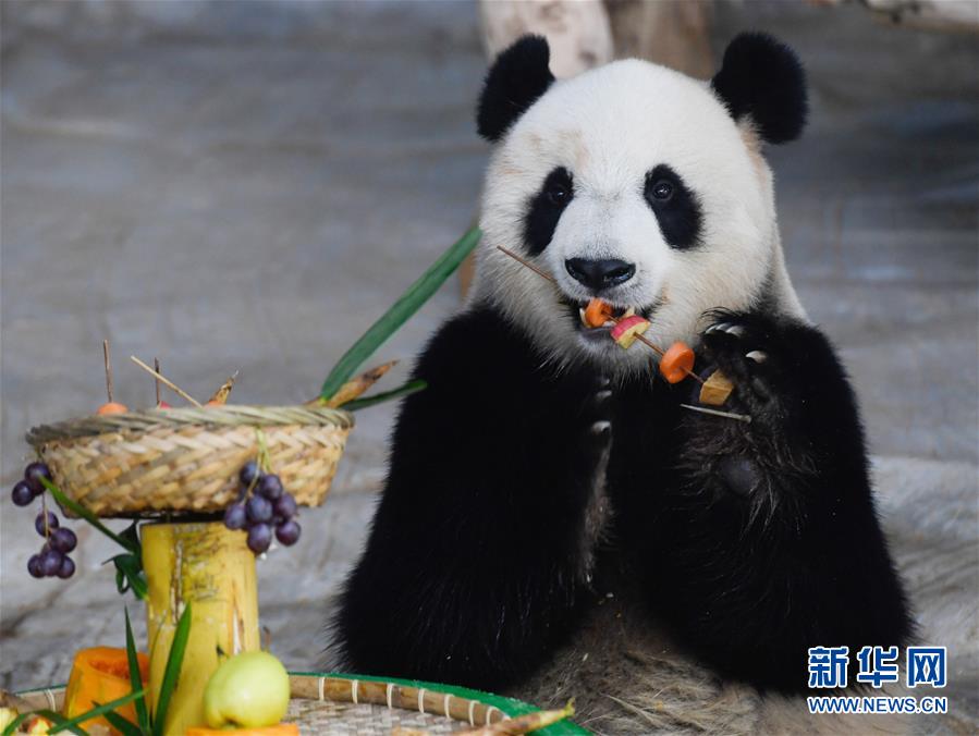 12月31日,大熊貓“貢貢”在“擼串”。 新華社記者 楊冠宇 攝