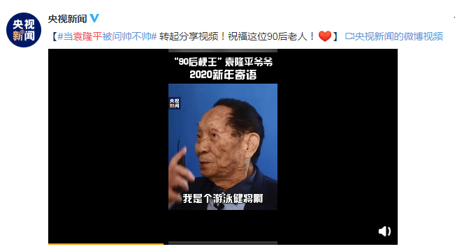 深圳新聞網(wǎng)訊  近日,央視新聞在其官方平臺下曬出一段袁隆平受采訪的視頻。值此2020年即將來臨之際,袁隆平先生在視頻中為年輕人們送來了新年寄語,“首先注意身體,這是基礎(chǔ),我年輕時候喜歡鍛煉,我是個游泳健將啊,游泳年輕的時候是武漢市第一名啊”,并且在視頻中回答了一個記者的問題,俘獲了無數(shù)網(wǎng)友的內(nèi)心。