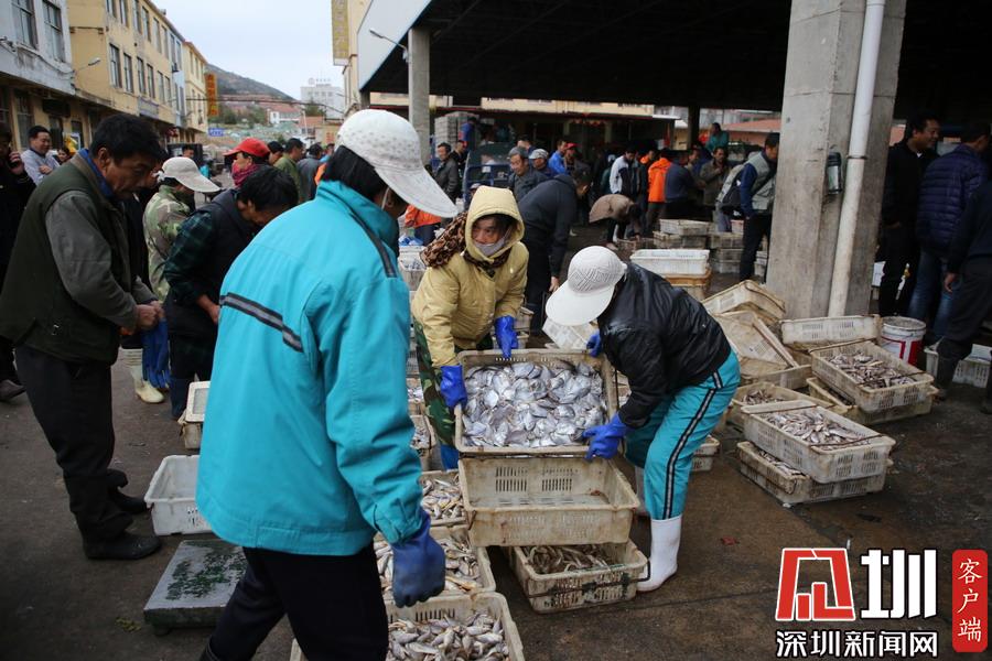 一筐筐的刀魚、鯧魚、鲅魚,很快被運輸?shù)脚R近的興海門海鮮批發(fā)市場,市場里人頭攢動、熙熙攘攘,就像趕年集一般,一派購銷兩旺的景象。