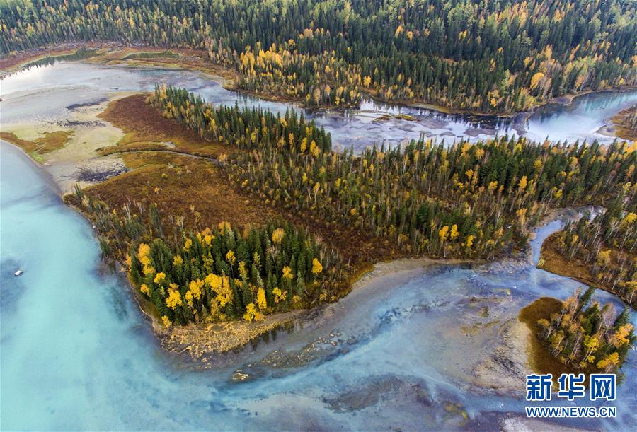 9月24日無人機拍攝的喀納斯景區(qū)風(fēng)光。新華社記者王菲攝
