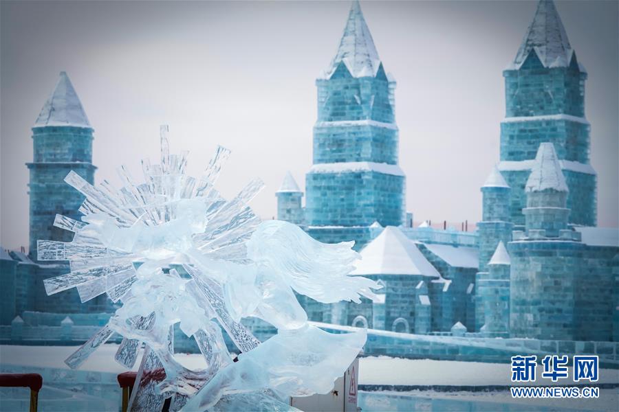 這是哈爾濱冰雪大世界園區(qū)中的景觀(1月5日攝)。每到冬季,天氣寒冷的冰城哈爾濱陸續(xù)迎來(lái)各類冰雕雪雕賽事。從2019年12月7日起,采冰工人們?nèi)找共杀\(yùn)冰、冰景雪雕藝術(shù)家精心雕琢,這些“冰雪造夢(mèng)者”們?cè)趪?yán)寒天氣中辛苦付出,讓一座“冰雪之城”在松花江畔拔地而起,向來(lái)自世界各地的游客展現(xiàn)浪漫絢麗的冰雪奇觀。新華社記者王松攝