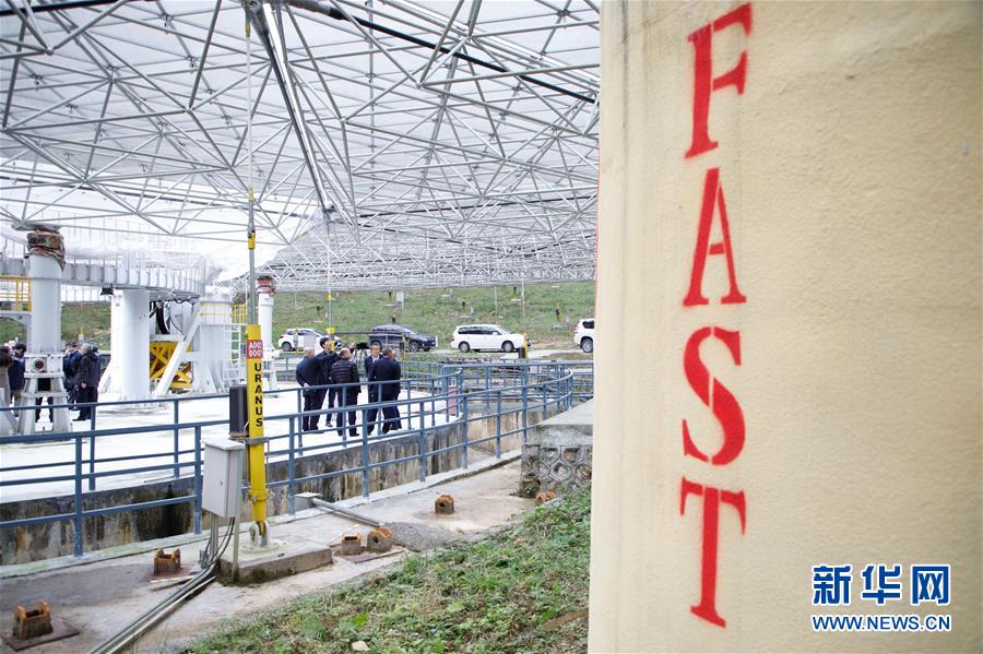 1月11日,專家學(xué)者對(duì)“中國天眼”進(jìn)行考察(檢修期間拍攝)。新華社記者劉續(xù)攝