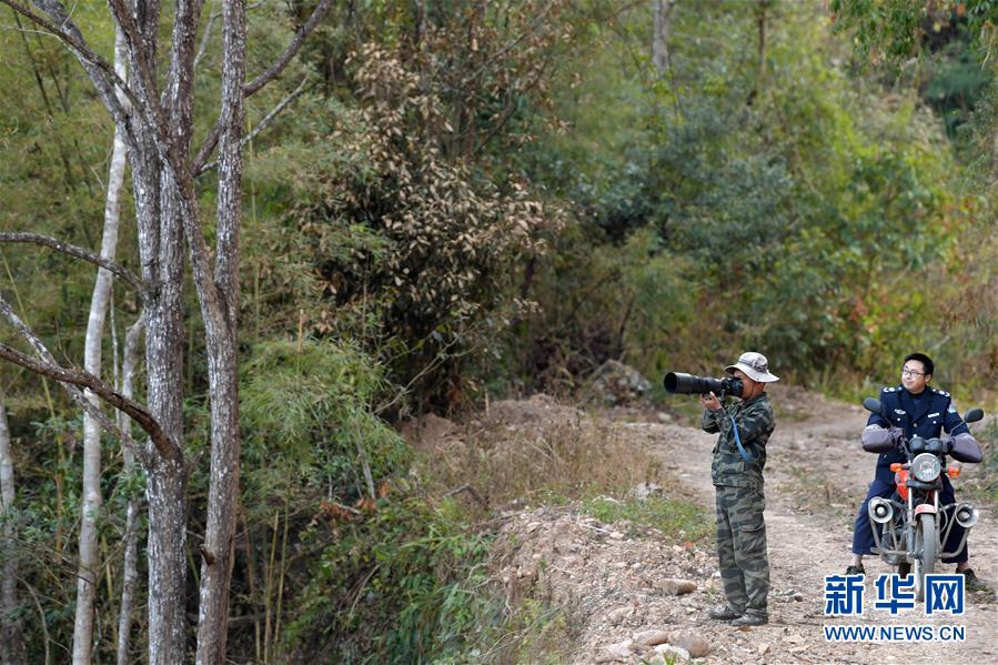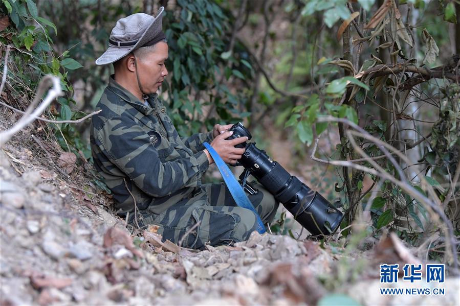 在江西九連山國家級(jí)自然保護(hù)區(qū),陳志高帶著他的相機(jī)在山里觀測(cè)拍攝(1月8日攝)。新華社記者 彭昭之 攝