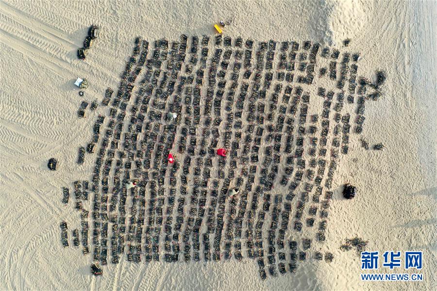 查線女工在檢測待用的檢波器(無人機(jī)照片,1月14日攝)。 新華社記者 丁磊 攝
