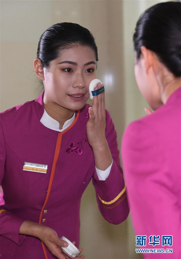 吉如在鏡子前化妝,帶著滿滿的笑意開(kāi)啟一天的工作(1月15日攝)。 新華社記者 陶明 攝