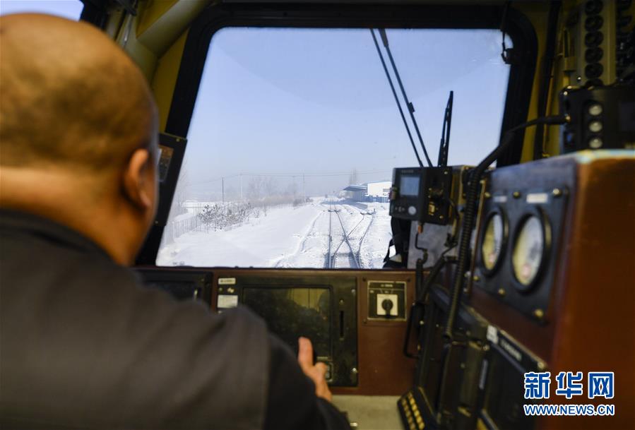 林海間的“送水小火車” 機(jī)車司機(jī)杜洪峰駕駛火車行駛在線路上(1月17日攝)。新華社記者 許暢 攝