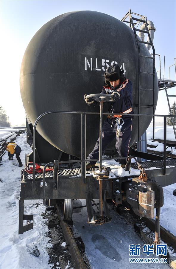 林海間的“送水小火車” 調(diào)車員對“送水小火車”進(jìn)行出行前的檢查作業(yè)(1月17日攝)。新華社記者 許暢 攝