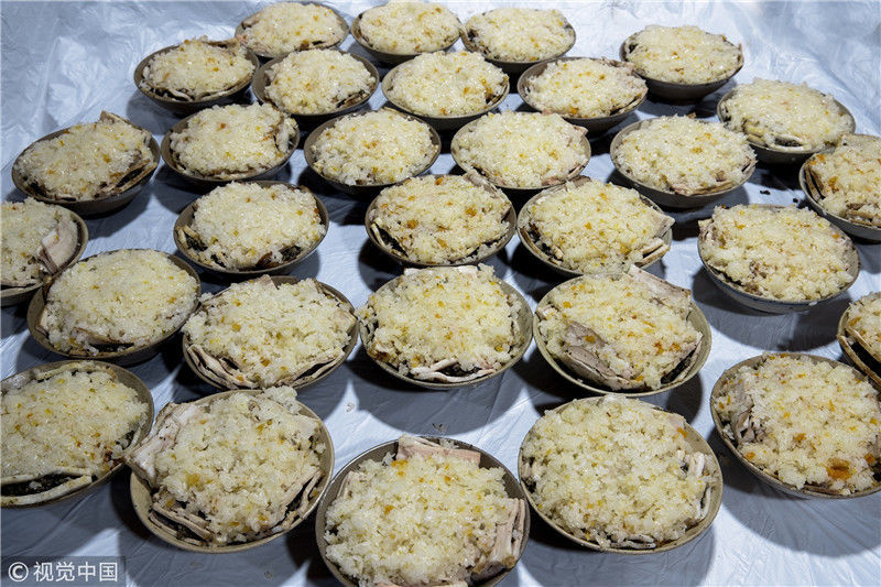 2019年1月26日,重慶中山古鎮(zhèn),880桌“千米長(zhǎng)宴”5萬(wàn)人共品年味。街坊們?cè)陬^天就開(kāi)始準(zhǔn)備各種菜肴與小吃。