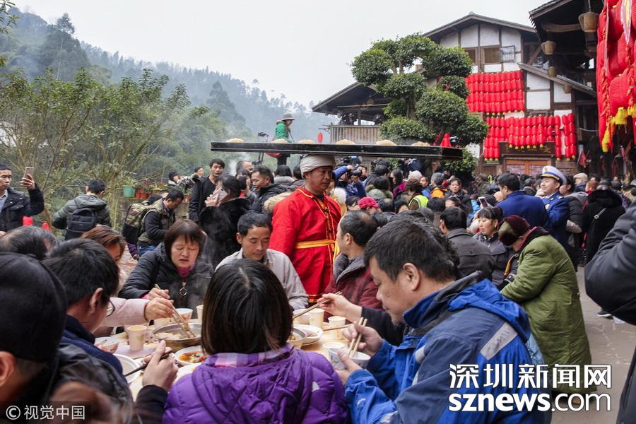 重慶:吃“千米長(zhǎng)宴” 品古鎮(zhèn)年味