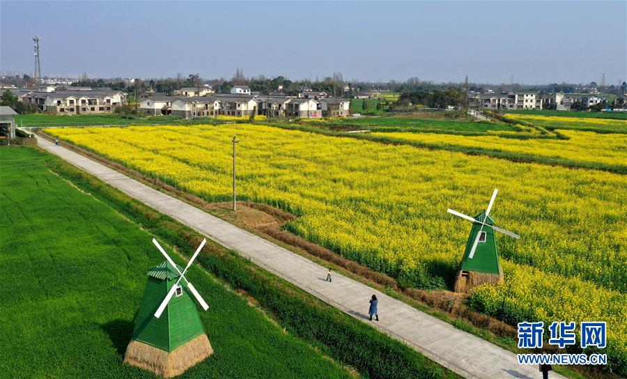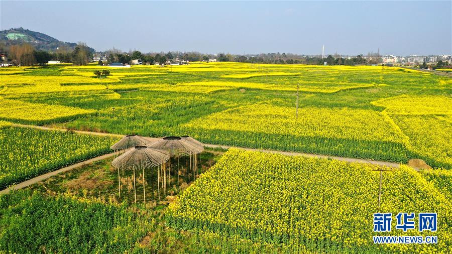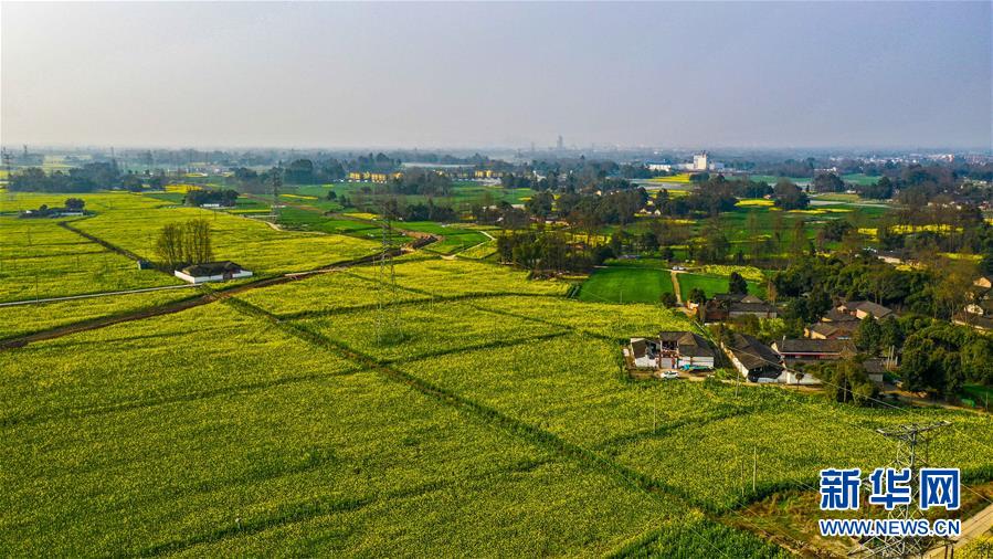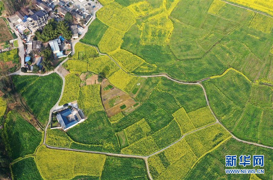 2月25日在四川省崇州市農(nóng)業(yè)產(chǎn)業(yè)功能區(qū)拍攝的油菜花田(無人機(jī)照片)。 初春時(shí)節(jié),正值農(nóng)時(shí)。成都平原西部的大邑、崇州等縣市油菜長勢良好,一片生機(jī)盎然的景象。 新華社記者 王曦 攝