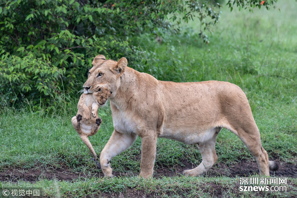英國野生動(dòng)物攝影師Paul Goldstein在肯尼亞的馬賽馬拉拍到了一頭小獅子被媽媽教訓(xùn)的場(chǎng)面。畫面中,小獅子正歡快地在草叢穿行,任憑媽媽喚了幾次都無動(dòng)于衷。為了把小獅子帶到安全地帶,母獅咬住小獅子的頸部,霸氣地將其叼在嘴巴里,小獅子一下安分起來,任由母獅帶著活動(dòng)。Paul說:“把人類的情感和表達(dá)方式加給動(dòng)物是不對(duì)的,但毫無疑問,這位母親對(duì)小獅子的調(diào)皮很不滿意。它喚了幾次,幼崽都拒絕服從它的命令。這個(gè)地方前一晚下了雨,母獅一天的大部分時(shí)間都會(huì)盯緊自己的孩子,避免它們?cè)庥鑫kU(xiǎn),而一直呆在潮濕的灌木叢中,又是這些小家伙不喜歡的。最終,母獅走向小獅子,直接叼起來放回了灌木叢里。”