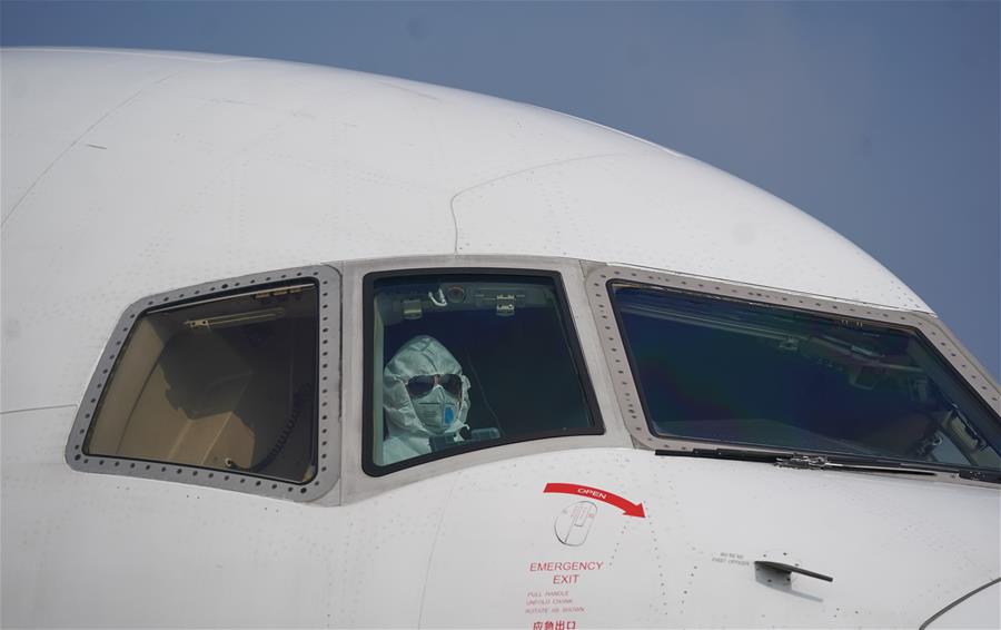 1月28日,飛行員駕駛滿載援助物資的飛機抵達(dá)武漢天河機場。新華社記者 程敏 攝