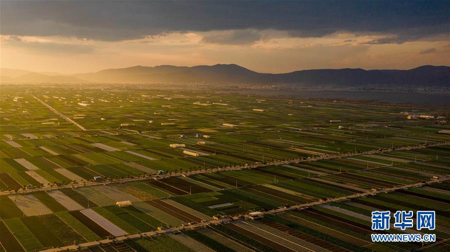 時下正值農(nóng)忙時節(jié),云南省玉溪市通??h的農(nóng)作物長勢喜人,山巒、湖水與農(nóng)田組成了一幅美麗的田園詩畫卷。