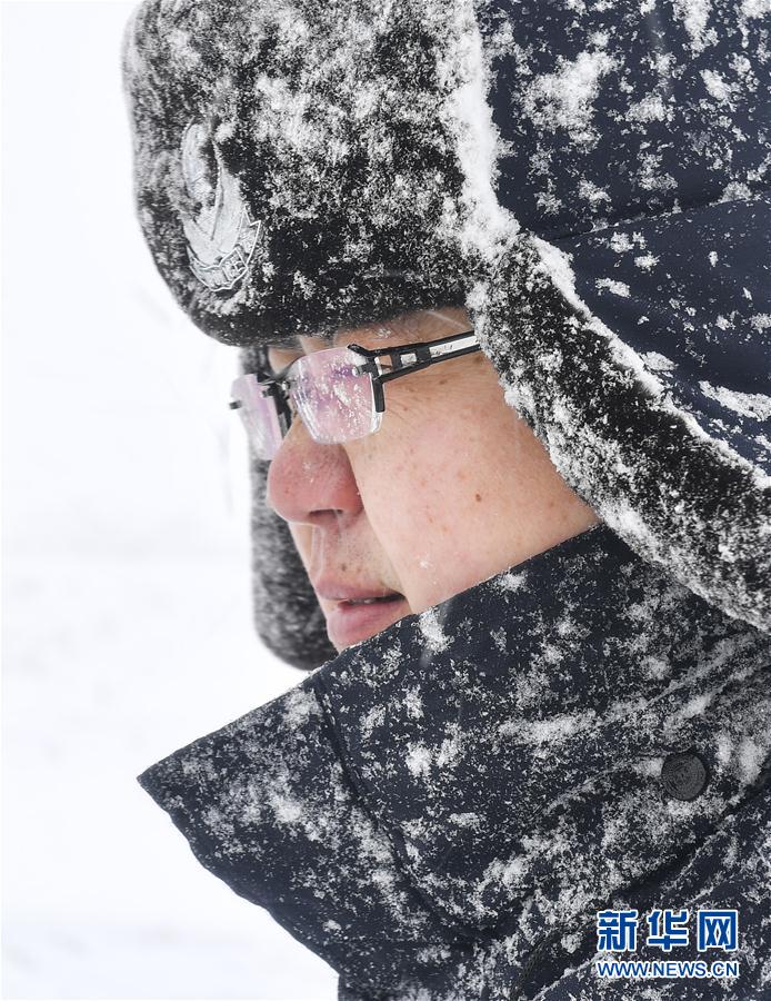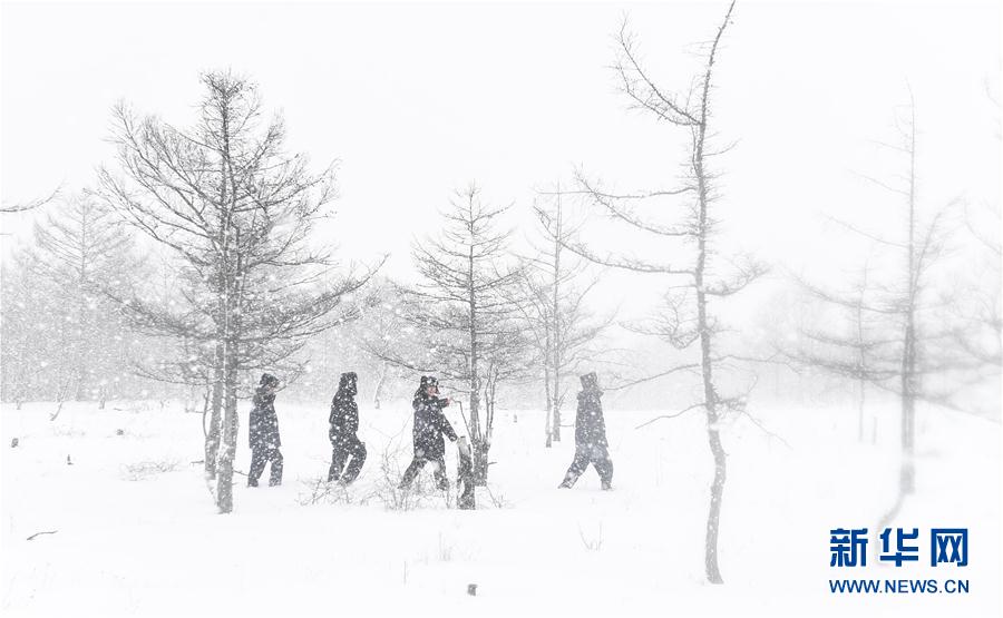 吉林省琿春森林公安局敬信派出所民警在風(fēng)雪中進(jìn)行巡護(hù)作業(yè)(3月4日攝)。