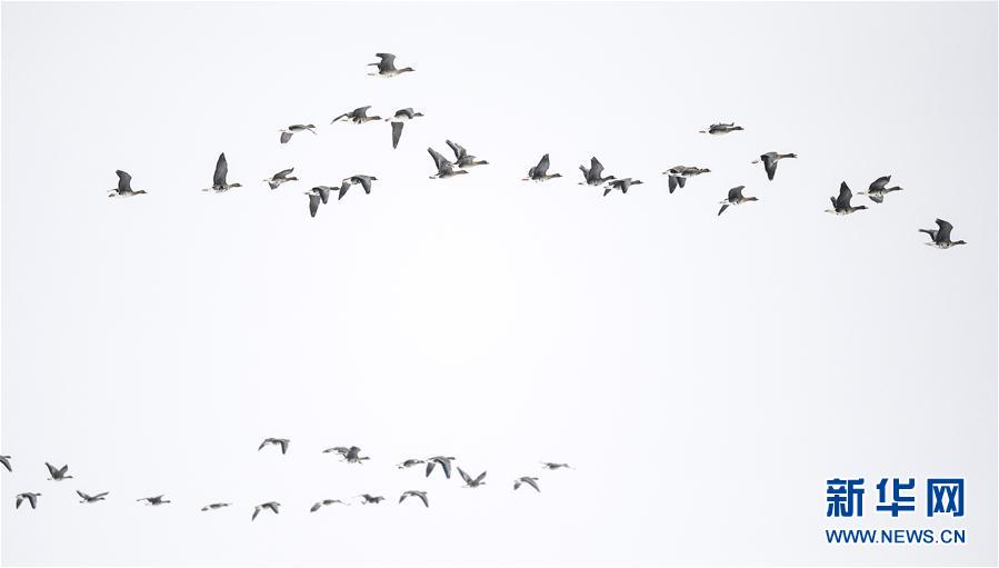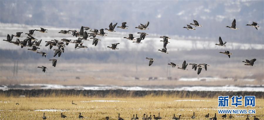 這是在琿春敬信濕地拍攝的大雁(3月3日攝)。新華社記者 許暢 攝