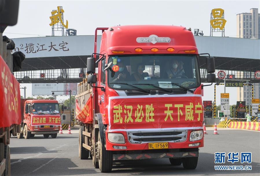 3月13日,滿載活魚的水產(chǎn)運輸車進入武漢。當(dāng)日,首批100噸調(diào)配自湖北省咸寧市的活魚運抵武漢市硚口區(qū)11個街道下轄社區(qū)。咸寧是魚米之鄉(xiāng),水產(chǎn)資源豐富。此次戰(zhàn)疫咸寧得到了全國人民的支持,疫情得到良好控制。咸寧送魚,希望傳遞愛心,支持武漢早日戰(zhàn)勝疫情。新華社記者程敏攝
