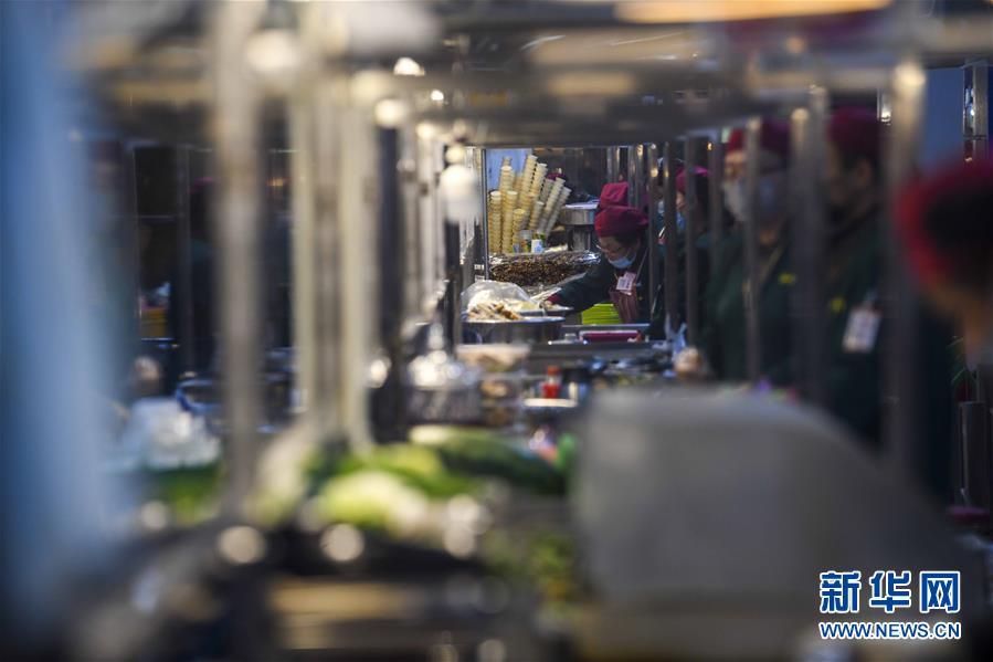 3月16日,在和田夜市環(huán)湖店,商販在制作各類美食。新華社記者 趙戈 攝