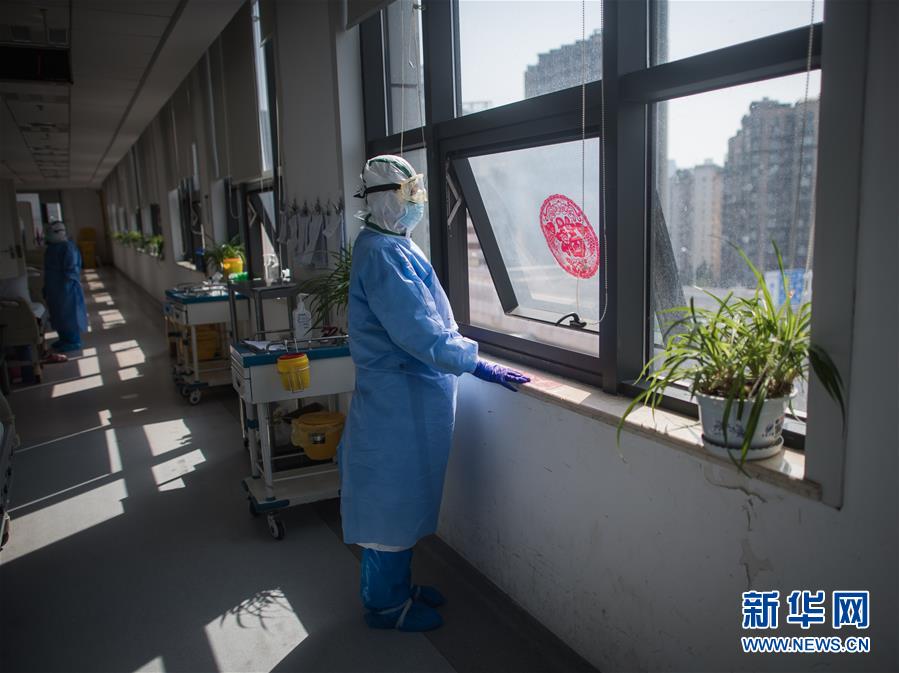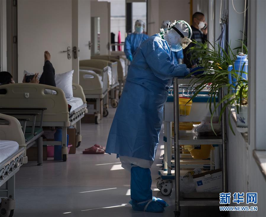3月19日,在武漢市肺科醫(yī)院隔離病房,醫(yī)護人員在窗邊小憩。 新華社記者 肖藝九 攝