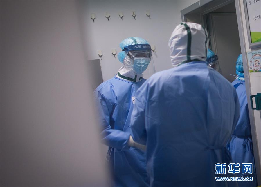 3月19日,在武漢市肺科醫(yī)院隔離病房,海南醫(yī)療隊隊員在現場忙碌。 新華社記者 肖藝九 攝