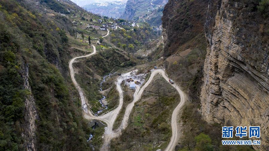 搬家的貨車行駛在云南省永善縣大興鎮(zhèn)駱丘村通往山外崎嶇的山路上(3月14日攝,無人機(jī)照片)。 新華社記者 江文耀 攝