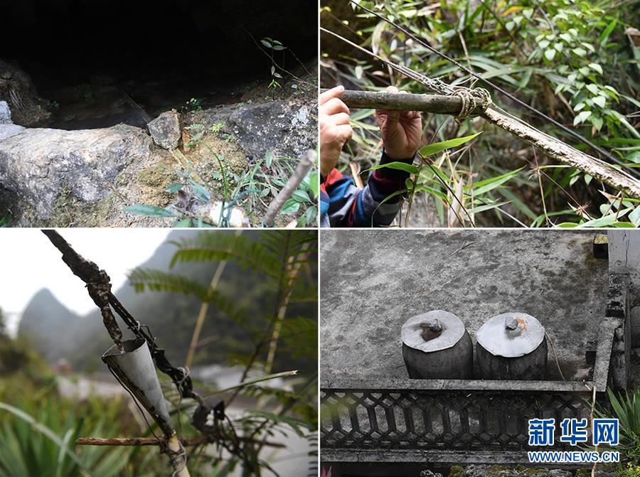 這張拼版圖片顯示廣西都安瑤族自治縣澄江鎮(zhèn)自成村加倫屯村民黃景飛獨創(chuàng)的“鐵線引水”法(2018年3月16日攝)。左上圖為竹枧將山泉水從山洞引出;右上圖為竹枧將山泉水引到鐵線上;左下圖為一個特制的漏斗將水接入膠管里;右下圖為膠管將山泉水送到水缸里。廣西有近一半貧困人口生活在石漠化地區(qū),涉及數(shù)十個縣區(qū)。這里也是廣西飲水保障程度最低的地區(qū),解決貧困人口飲水問題是廣西脫貧攻堅戰(zhàn)“硬仗中的硬仗”。“十三五”以來,廣西加快實施農(nóng)村飲水安全鞏固提升工程。因地制宜,采取新建、擴建及管網(wǎng)延伸等多種措施,補齊貧困地區(qū)水利薄弱短板,進一步提升石漠化地區(qū)群眾飲水安全保障水平,助推脫貧攻堅。新華社記者陸波岸攝