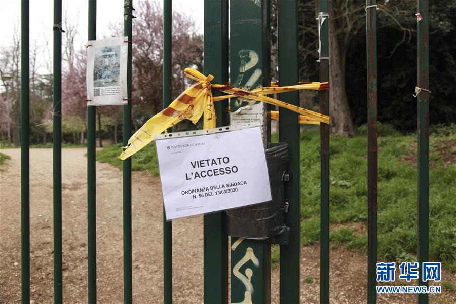 3月14日,在意大利首都羅馬,一所公園因新冠病毒疫情關(guān)閉。新華社記者劉詠秋攝