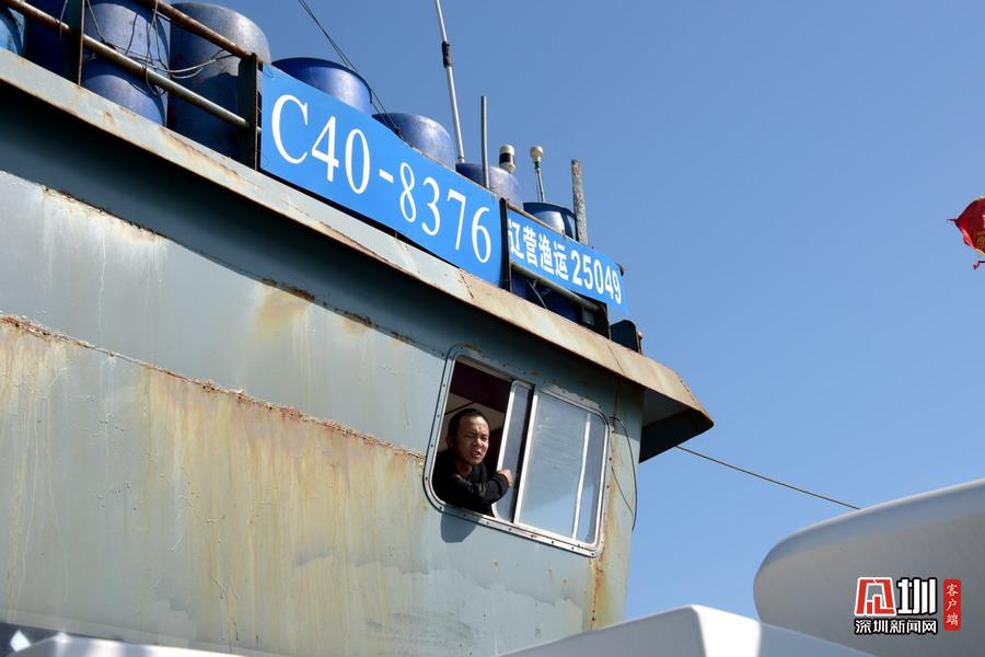 2020年5月6日,山東省榮成市石島管理區(qū)石島灣海域,榮成市漁政部門執(zhí)法人員對一運輸船進行檢查。