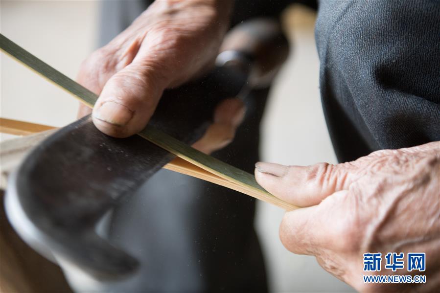 5月12日,浙江諸暨龍溪村的百歲老人蔡渭東在家中處理竹篾。浙江諸暨東和鄉(xiāng)龍溪村有一位102歲的老人蔡渭東,他從12歲開始拜師學(xué)藝,做了90年的篾匠,如今依然耳聰目明,每天堅(jiān)持編織篾器。蔡渭東老人說他舍不得丟掉這份老手藝,也希望年輕人能傳承下去。新華社記者翁忻旸攝