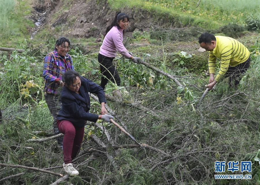 龍臺村村民在平整一處殘次林(4月1日攝)。新華社記者劉坤攝