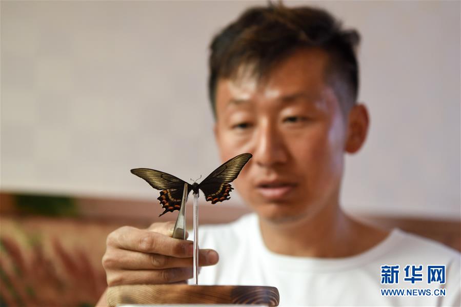 在吉木薩爾縣七彩蝶園,關(guān)富云在制作蝴蝶標(biāo)本(5月15日攝)。走進(jìn)關(guān)富云的七彩蝶園,游客不僅可以近距離接觸翩翩起舞的蝴蝶,還可以欣賞蝴蝶破繭成蝶的蛻變過(guò)程。今年34歲的關(guān)富云用9年的時(shí)間實(shí)現(xiàn)了自己的“蝴蝶夢(mèng)”,完成美麗的“蝶變”。關(guān)富云家住新疆吉木薩爾縣北地社區(qū)。2011年,他看到一檔農(nóng)業(yè)致富節(jié)目,萌生了養(yǎng)殖蝴蝶的想法。關(guān)富云說(shuō),當(dāng)時(shí)蝴蝶養(yǎng)殖還是一種新興產(chǎn)業(yè),他抱著試一試的想法,在海南學(xué)習(xí)了3個(gè)月蝴蝶養(yǎng)殖,帶回100多個(gè)蝶蛹在家試驗(yàn)養(yǎng)殖。蝴蝶的生存周期短,在當(dāng)?shù)仞B(yǎng)殖需要克服溫度、濕度、病蟲(chóng)害等問(wèn)題。關(guān)富云不斷嘗試,越挫越勇,羽化成功的蝴蝶在2014年終于突破了萬(wàn)只。蝴蝶的色彩艷麗,活體蝴蝶可用于婚慶、開(kāi)業(yè)慶典等活動(dòng)中放飛,可以取得很好的收益。但它的生命短暫,如何才能最大化蝴蝶的效益,留住它的美呢?關(guān)富云動(dòng)起了心思,開(kāi)始嘗試制作標(biāo)本和蝶翅畫(huà)?!昂宛B(yǎng)殖不同,做蝶翅畫(huà)是個(gè)創(chuàng)作的過(guò)程,從選擇標(biāo)本到粘貼,每一步都要突出美感?!标P(guān)富云介紹,一幅色彩明艷、栩栩如生的蝶翅畫(huà)耗時(shí)多日才能完成。如今,關(guān)富云的活體蝴蝶和蝶翅畫(huà)通過(guò)線上線下銷售,產(chǎn)品還銷往北京、廈門等地。關(guān)富云的蝴蝶產(chǎn)品得到市場(chǎng)的認(rèn)可,政府也對(duì)他給予大力支持。2019年,吉木薩爾縣在泉子街鎮(zhèn)建起蝴蝶觀賞園,吸引了不少游客到此參觀游玩。對(duì)于未來(lái)的發(fā)展,關(guān)富云信心滿滿,“我希望把蝴蝶產(chǎn)業(yè)發(fā)展到天山南北,讓人們?cè)诤涞亩疽材苡^賞到蝴蝶,并且讓更多人參與其中,致富脫貧”。新華社記者丁磊攝