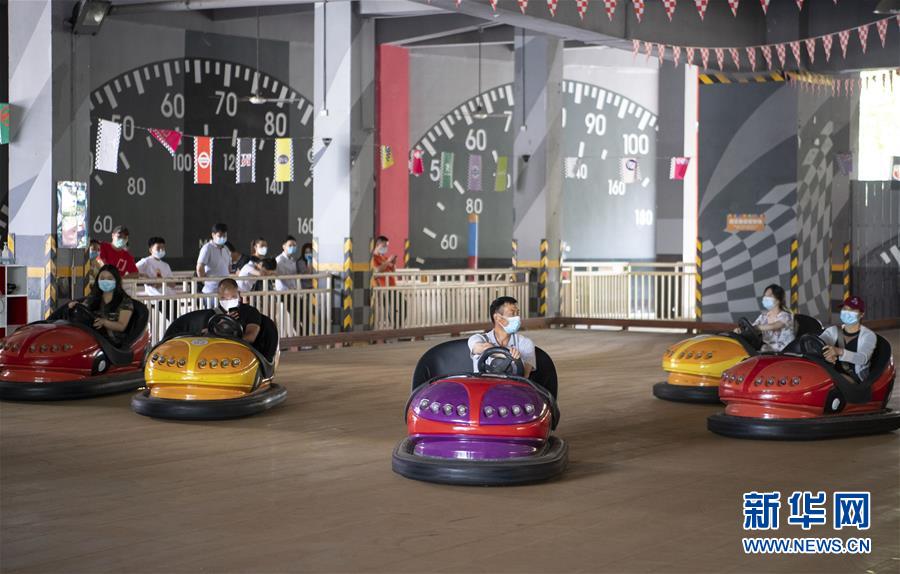 5月19日,游客在武漢歡樂谷內(nèi)游玩。當(dāng)日,湖北武漢歡樂谷重新開放。園區(qū)執(zhí)行客流量管控,游客需通過網(wǎng)上預(yù)約才能進(jìn)入,室內(nèi)場館暫不開放。新華社記者熊琦攝