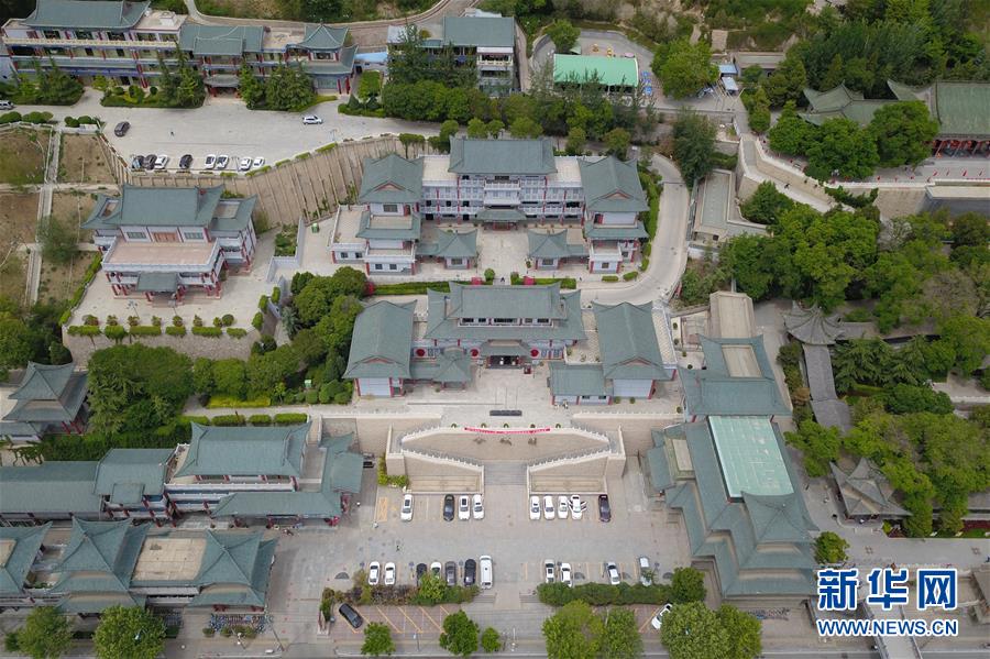 這是5月18日在蘭州市城關(guān)區(qū)拍攝的白塔山下金城關(guān)文化博覽園初夏景象(無人機(jī)照片)。新華社記者范培珅攝