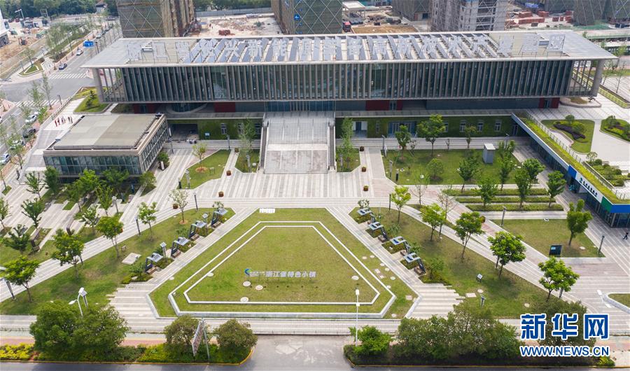 5月21日,空中俯瞰新能源小鎮(zhèn)“城市客廳”(無人機(jī)照片)。城市客廳的屋頂和側(cè)面都安裝了可以開合、轉(zhuǎn)動(dòng)的光伏板,可以隨時(shí)調(diào)整角度,控制采光和發(fā)電。