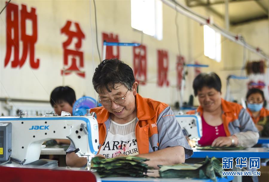6月3日,村民在深州市高古莊鎮(zhèn)鳳凰池村扶貧車間做縫紉工作。今年以來,河北省深州市圍繞決勝全面小康、決戰(zhàn)脫貧攻堅任務目標,在推進產(chǎn)業(yè)扶貧的過程中注重激發(fā)內生動力,通過電商扶貧、扶貧車間、特色種植養(yǎng)殖等多種形式,提升自我“造血”功能,提高貧困群眾受益度。新華社記者李曉果攝。