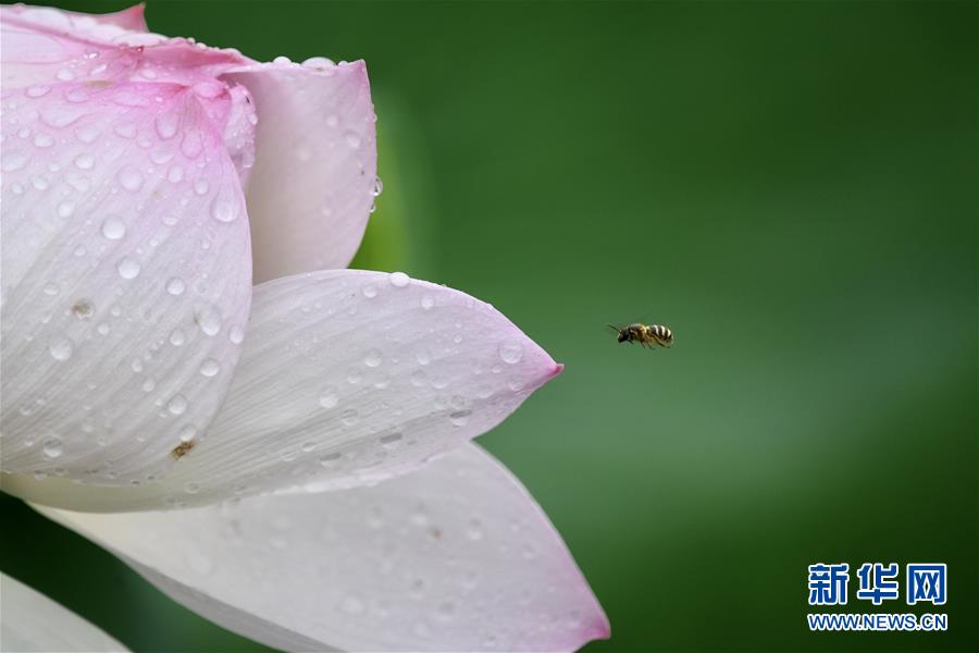 6月7日,一陣小雨過(guò)后,福州金山公園內(nèi)盛開(kāi)的荷花愈加?jì)善G欲滴。新華社記者姜克紅攝