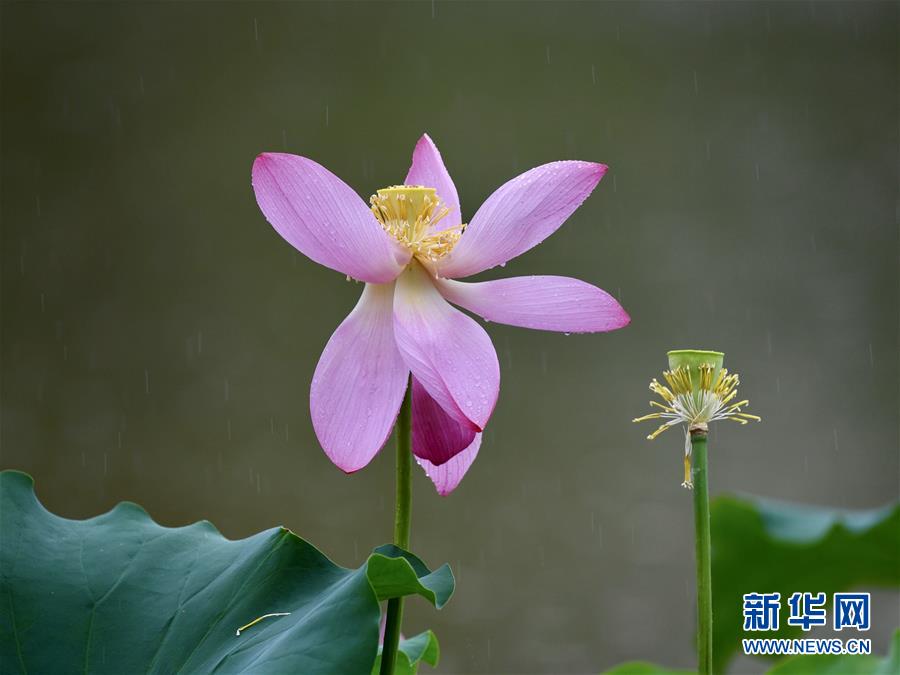 6月7日,一陣小雨過后,福州金山公園內(nèi)盛開的荷花愈加?jì)善G欲滴。新華社記者姜克紅攝