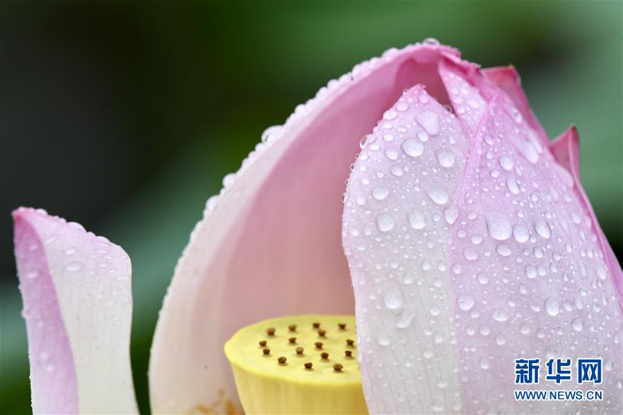 6月7日,一陣小雨過(guò)后,福州金山公園內(nèi)盛開(kāi)的荷花愈加?jì)善G欲滴。新華社記者姜克紅攝