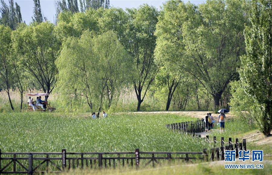 6月7日,市民在位于北京市延慶區(qū)的野鴨湖國家濕地公園游玩。隨著北京消費季的啟動,不少市民利用周末時間來到北京遠郊的風(fēng)景區(qū)游玩,參加當(dāng)?shù)嘏e辦的各類消費季和休閑旅游活動。新華社記者李欣攝