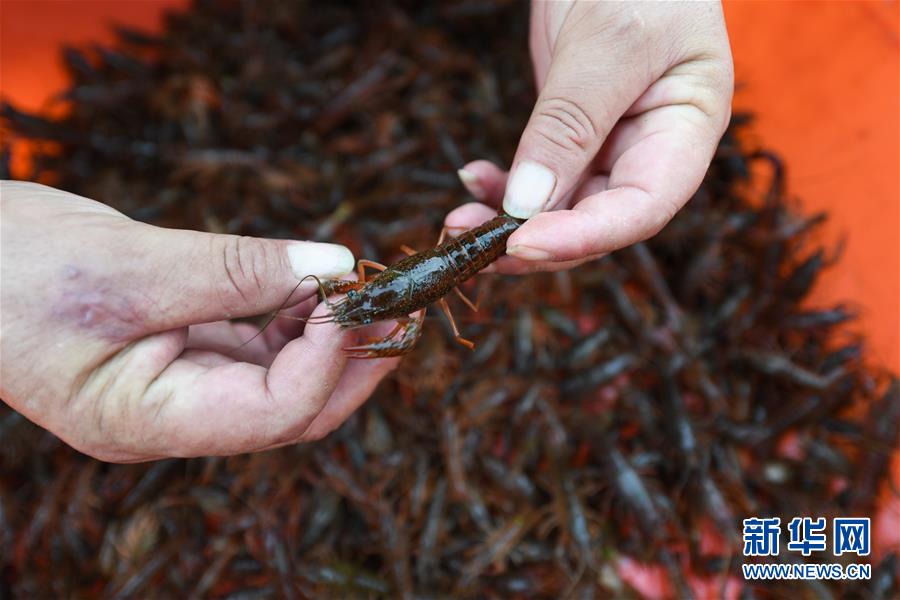 6月9日,在宿遷市宿城區(qū)中揚(yáng)鎮(zhèn)一家淺水藕套養(yǎng)小龍蝦合作社,負(fù)責(zé)人王乃國(guó)在挑選蝦苗,準(zhǔn)備出售給其他養(yǎng)殖戶(無人機(jī)照片)。新華社記者季春鵬攝
