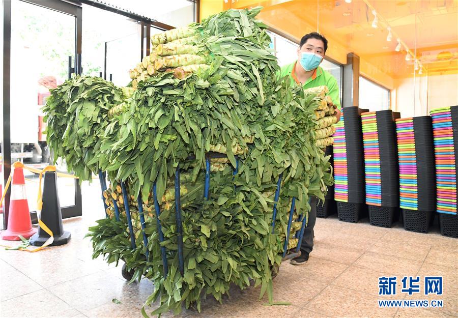 6月14日,在北京市海淀區(qū)的超市發(fā)雙榆樹店,工作人員在搬運蔬菜。 新華社記者 任超 攝