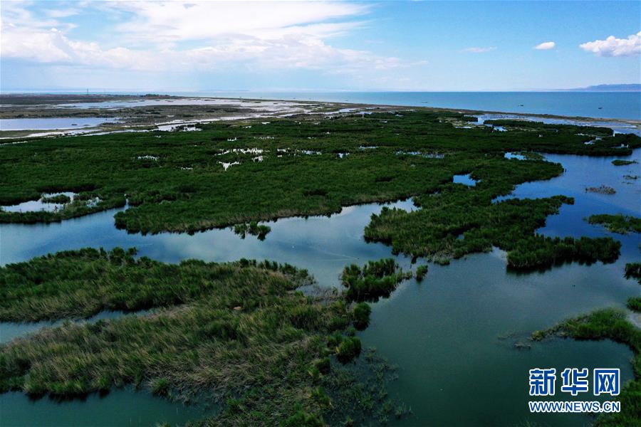 6月18日拍攝的新疆烏倫古湖國家濕地公園(無人機(jī)照片)。烏倫古湖國家濕地公園位于新疆阿勒泰地區(qū)福??h城以西,由烏倫古湖和吉力湖兩部分組成。烏倫古湖濕地公園是遷徙候鳥飛越天山和阿爾泰山的“能量補(bǔ)充站”,良好的濕地生態(tài)吸引著大量遷徙鳥類在此集結(jié)成群,繁殖棲息,成為一道靚麗的風(fēng)景線。新華社記者 沙達(dá)提 攝
