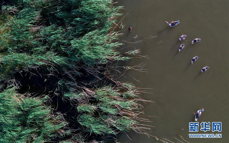 6月19日,水鳥在新疆烏倫古湖國家濕地公園覓食。烏倫古湖國家濕地公園位于新疆阿勒泰地區(qū)福??h城以西,由烏倫古湖和吉力湖兩部分組成。烏倫古湖濕地公園是遷徙候鳥飛越天山和阿爾泰山的“能量補(bǔ)充站”,良好的濕地生態(tài)吸引著大量遷徙鳥類在此集結(jié)成群,繁殖棲息,成為一道靚麗的風(fēng)景線。新華社記者 沙達(dá)提 攝