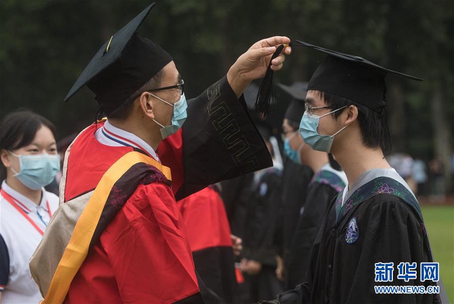 6月20日拍攝的武漢大學(xué)2020年畢業(yè)典禮現(xiàn)場。新華社記者 肖藝九 攝